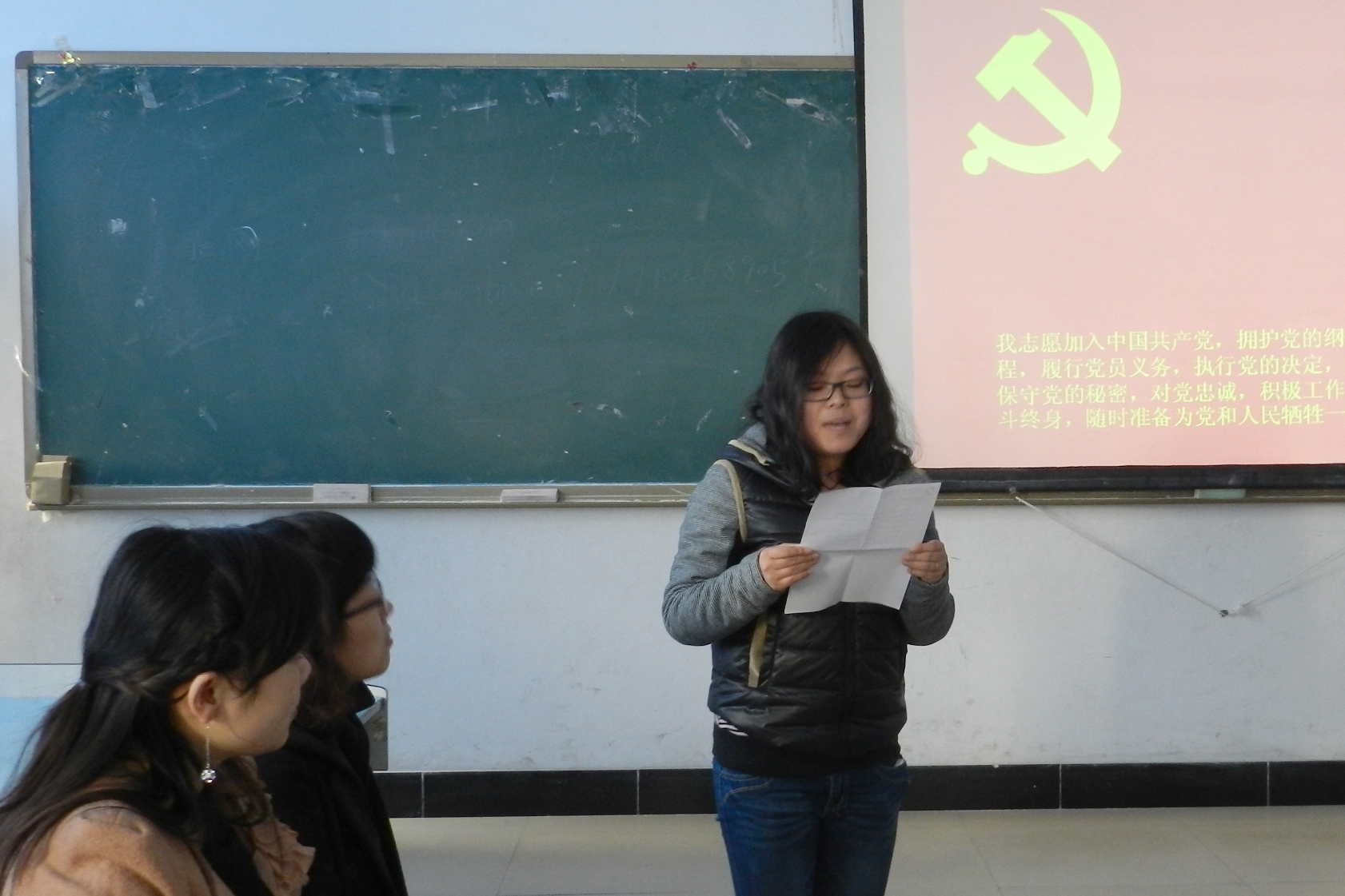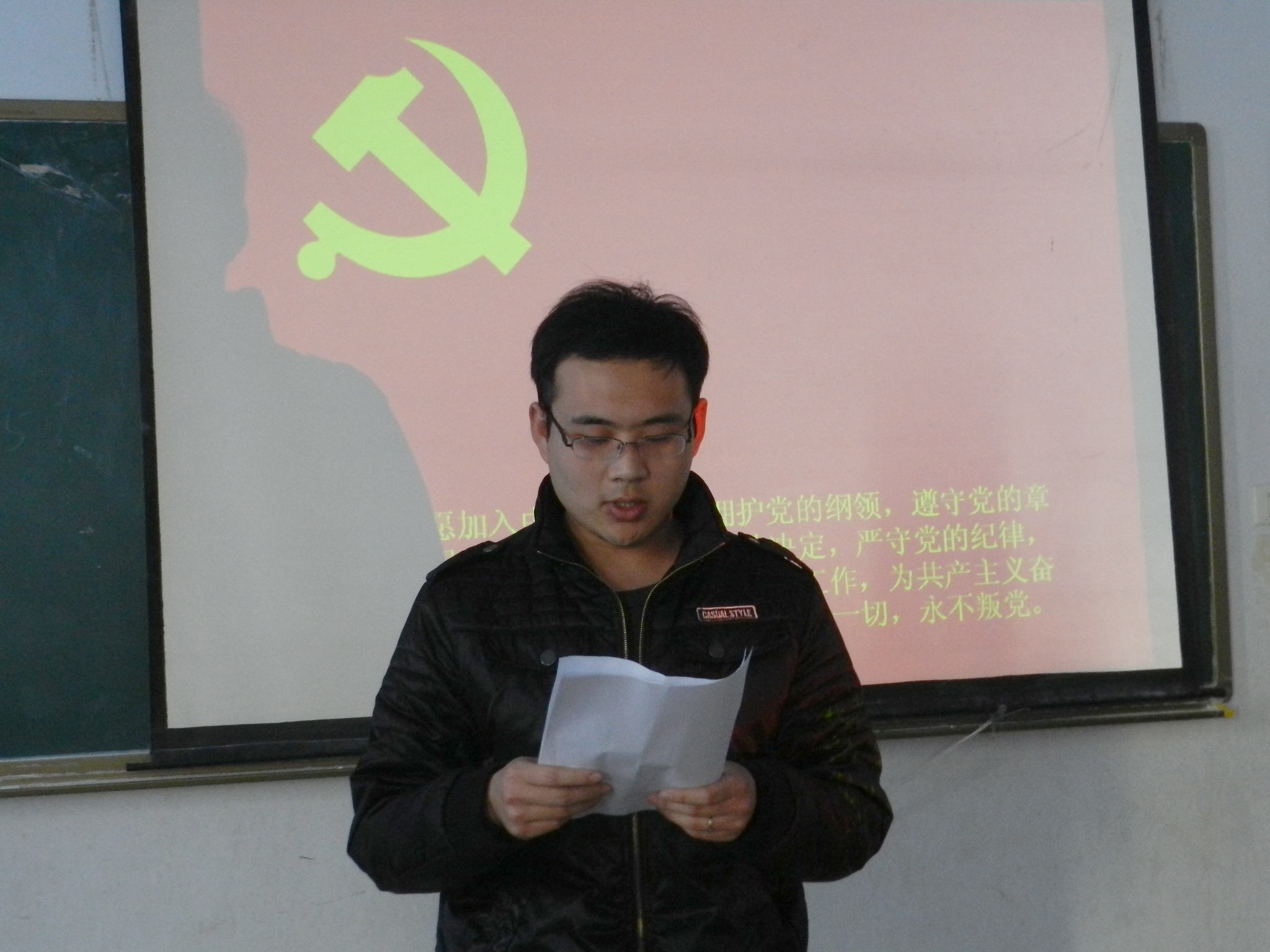2013年3月14日下午,员工第二、三、四支部组织党员宣誓活动。宣誓仪式在庄严的国歌声中开始,由王娜同志领誓,18名党员面向党旗齐声朗诵入党誓词。杨雅东同志代表老党员发言,向宣誓的新党员表示祝贺。陈曦芃同志代表新党员发言,表示要遵守党章,各方面严格要求,起先锋模范作用。宣誓仪式在国际歌声中圆满结束。员工第三党支部书记高建立同志主持了宣誓活动。