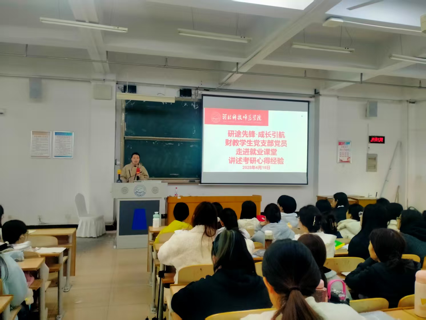 2025年4月18日,财教员工党支部的党员们走进就业课堂开展“研途先锋·成长引航”考研经验分享会。财教员工党支部骨干党员根据自己考研上岸经验,为财务会计教育专业三年级员工就考研相关话题展开深入交流,为同学们提供宝贵经验与实用建议,助力考研之路。