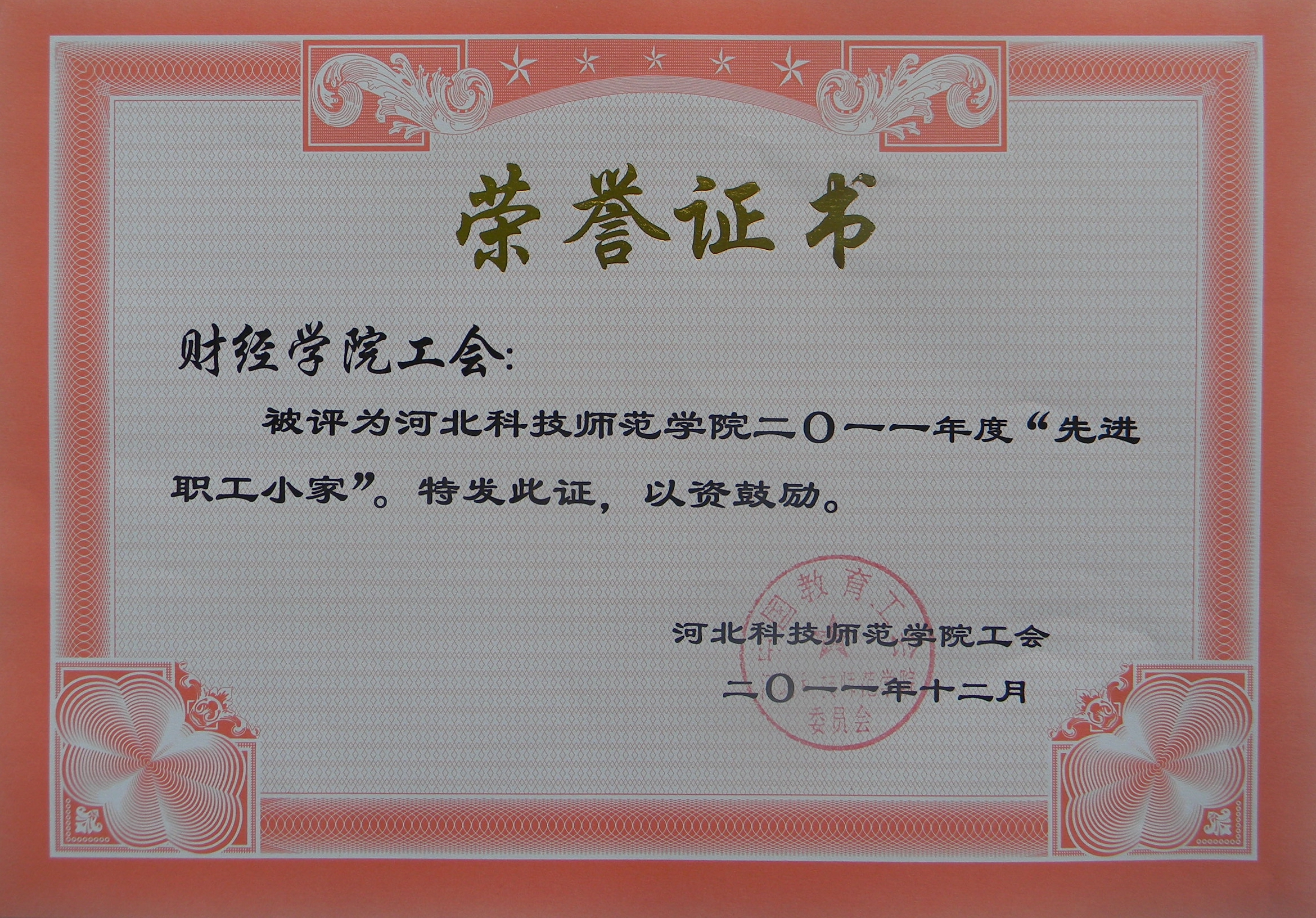 体育365官网工会荣获公司2011年度“先进职工小家”荣誉称号。