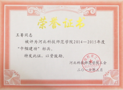 王箐博士荣获校工会“巾帼建功”标兵荣誉
