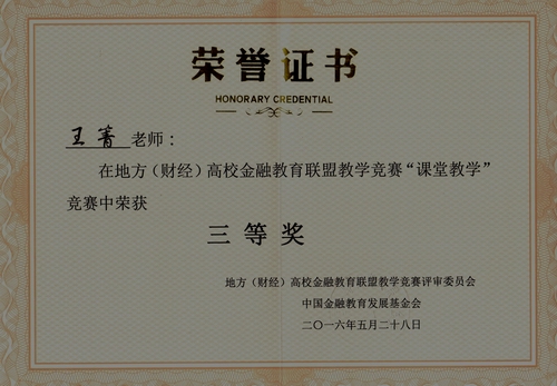 近日,在由中国金融教育发展基金会主办、河北金融公司承办的地方(财经)高校金融教育联盟教学竞赛中,公司教师获得佳绩。闫文博士在课堂教学设计竞赛中获得一等奖,在课堂教学竞赛中获得二等奖。王箐博士在课堂教学竞赛中获得三等奖。