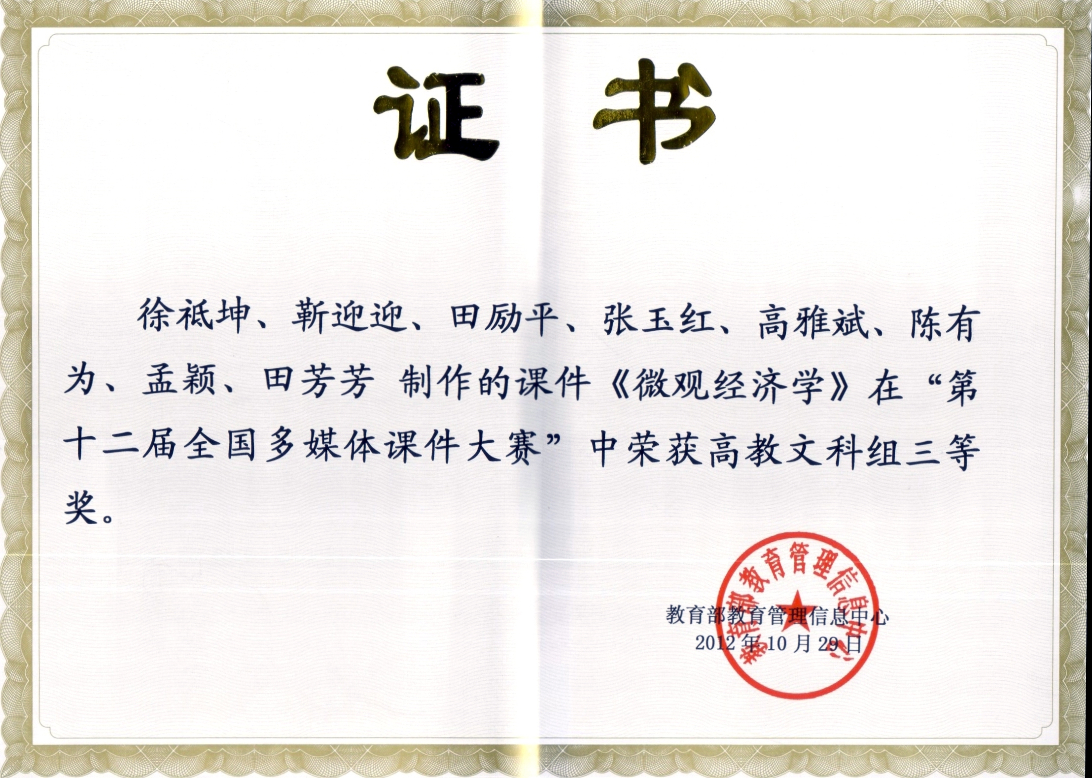 第十二届全国多媒体课件大赛高教文科组三等奖
