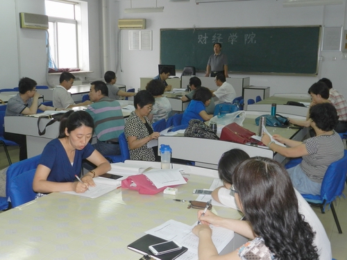 名报名教师向公司教学工作委员会汇报了对相关课程的认识、任课资格和课程准备情况。说课结束后,教学工作委员会给每位参加说课的教师评分。公司将在评分结果的基础上确定任课教师。经理贾圣武教授主持了说课活动。