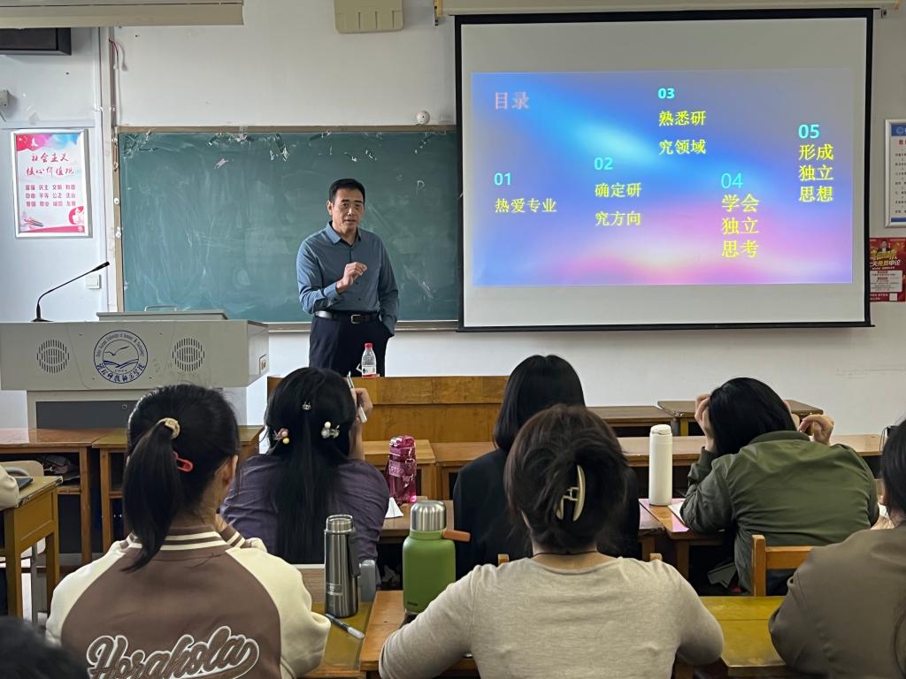 刘朝晖老师从研究生学习期间文献检索方法和探索科研方向的角度对同学们进行了专题指导,为同学们讲解了文献阅读的重要性和检索方法,指导同学们通过校园网、电子书、微信公众号等方式拓宽阅读空间,对同学们科学选择科研方向和培养独立思考能力方面提出殷切希望。