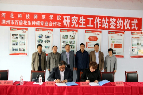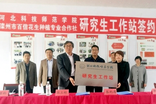 ,校研究生部主任张立彬教授、体育365官网经理于红军教授、农学与生物科技公司副经理乔亚科教授一行6人赶赴滦州市,与滦州市委组织部、滦州市农牧局、滦州市百信花生种植专业合作社洽谈合作事宜,与滦州市百信花生种植专业合作社签署了研究生工作站协议并举行了授牌仪式。