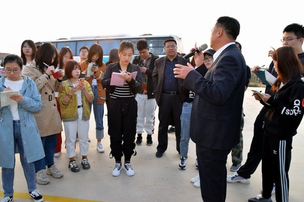 图为调研师生和调研单位领导合影