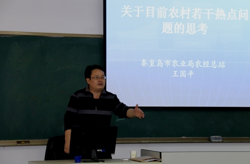 2015年12月24日,公司研究生校外导师、市农经总站站长王国平高级农经师在逸夫楼七楼实验室作讲座。王国平高级经济师讲座的内容包括农村土地产权的现实选择、农村承包土地确权及土地承包权有序流转问题解析、重构村集体经济组织及集体产权制度改革问题解析、新型农业经济主体发展及展望。公司领导和教师同研究生一起参加讲座。