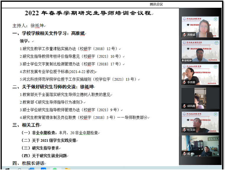 2022年6月2日下午,体育365官网以腾讯会议形式召开研究生导师培训会议,会议由体育365官网副经理徐祗坤主持,体育365官网所有研究生导师均参加了此次培训会议。