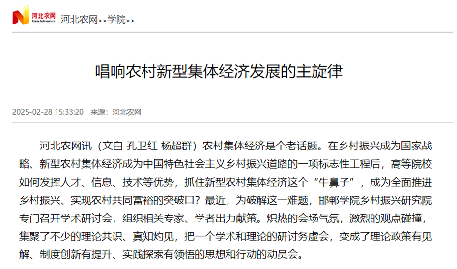 徐教授的报告内容丰富、观点新颖,引发了参会人员的热烈讨论与广泛关注,对推动新型农村集体经济发展具有重要的参考价值,日前已被河北新闻网、河北农网、新浪财经等多家媒体报道。(编辑:路荞华 审核:徐祗坤)
