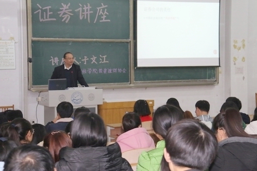讲座中,于文江总经理从社会演进的角度讲述了资本的作用和财富管理的重要性,阐述了证券公司在促进资本流动中的作用以及证券行业的发展前景,对证券行业的人才需求做了详细的解读。他热情鼓励同学们刻苦学习证券知识,勤于实践,立志投身证券行业,成长成才。于文江总经理具有20年证券从业和管理的经历,证券从业和管理经验丰富,他的讲座内容丰富,同学们受益匪浅。他和同学们积极互动,讲座现场气氛轻松愉快。
