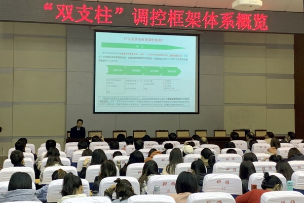 2019年10月31日,公司邀请中国人民银行秦皇岛市中心支行货币信贷科副科长高东胜博士在学术报告厅作了题为“‘双支柱’调控框架体系概览”的讲座。公司副经理徐祗坤教授主持讲座并做了评述,市人行张自力副行长及市人行和其他金融机构20多人出席了讲座;公司200余师生听取了讲座。