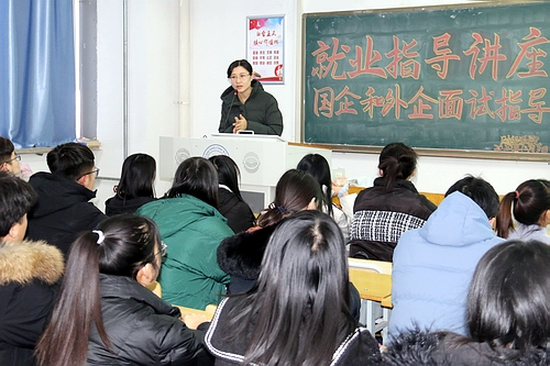 2020年12月3日,公司在逸夫楼A609教室举办就业指导讲座。高丽辉老师应邀了作国企和外企面试指导。近百名同学现场聆听讲座。