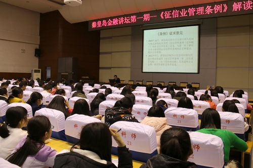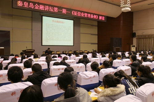 2016年11月10日,公司邀请中国人民银行石家庄中心支行征信管理处制度宣传科科长徐强在秦皇岛校区学术报告厅作题为“《征信业管理条例》解读”的征信知识讲座。公司400余名师生聆听讲座。讲座由公司经理于红军教授主持。