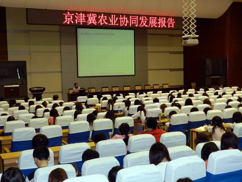 2014年6月6日下午,河北农业大学经贸公司经理、博士生导师赵邦宏教授应邀来校作了题为“京津冀农业协同发展”的学术报告。体育365官网教师、研究生和本科生近400人参加了本次报告会。报告由贾圣武经理主持。