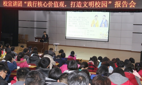 ,公司邀请校“践行核心价值观,打造文明校园”宣讲团成员王丽玲副教授举行报告会,报告会的题目是“孤竹文化与社会主义核心价值观”。体育365官网师生230余人聆听了报告会。报告会由体育365官网经理于红军主持。