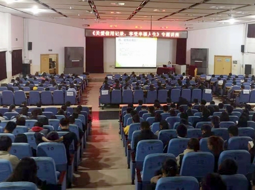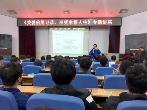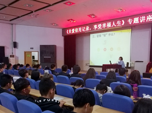 2018年10月23日晚,校员工处和中国人民银行秦皇岛市中心支行联合举办、公司承办的新生征信知识讲座在昌黎校区学术报告厅如期举行。讲座的主题是“关爱信用记录,享受幸福人生”。公司副经理徐祗坤教授、员工处郭立新主任、张丽玲科长出席讲座。