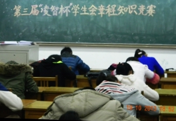 为了加深公司员工会干部对员工会的了解,加强员工干部对规章制度严格遵守的意识,以便更快适应员工会的工作,员工会办公室于2013年10月19日晚,在逸夫楼A709和A710进行了以“自我管理,自我提高;严于律己,遵规守矩”为主题的“凌智杯”员工会章程考试。在考试期间所有参试人员细心答题,监考员认真监考,整个考试过程井然有序,有条不紊。