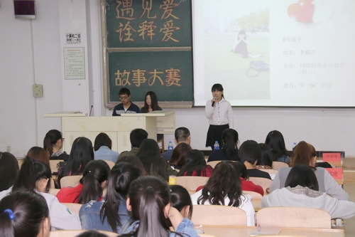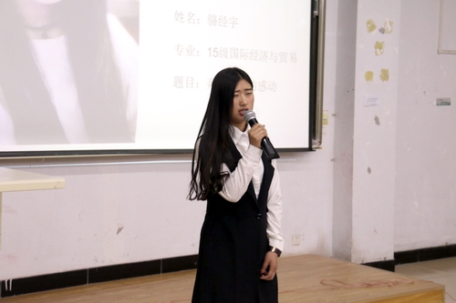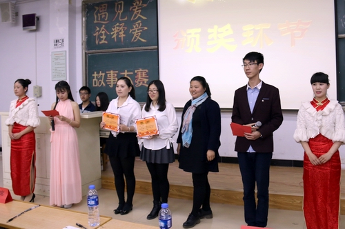 比赛中,选手们依次登台,讲人讲事,和大家分享自己的感动。选手们的故事中饱含着的或者是互帮互助的友情,或者是血浓于水的亲情,亦或是矢志不渝的爱情,都充满正能量。不论是瞬间的感动,还是感动已成为幸福,满满的全是爱。观众为选手们声情并茂的感人故事所打动,现场不时响起阵阵掌声。经过评比,邓微同学获得一等奖,王山月、胡馨云获得二等奖,于光宇、骆经宇、肖丽娜获得三等奖。故事比赛圆满结束。(编审:李宝文)