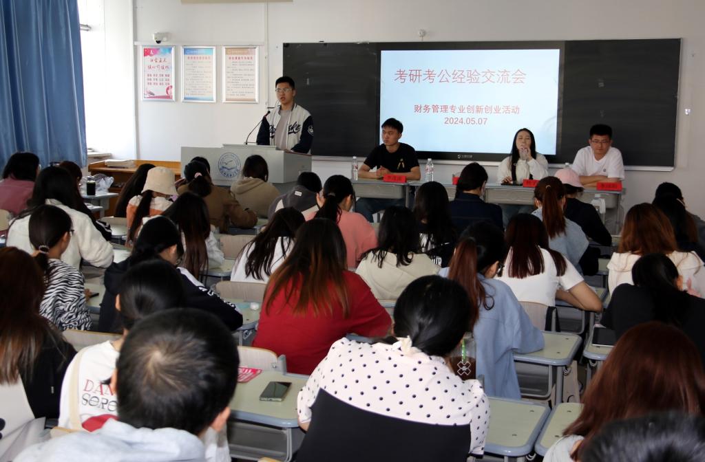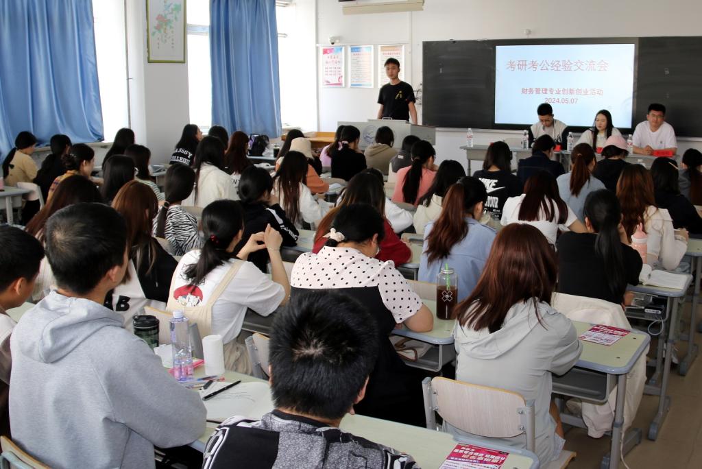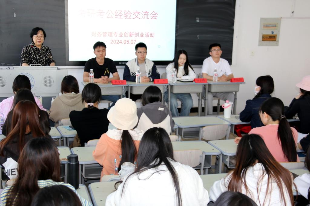 2024年5月7日,财务管理专业考研考公考银行经验交流会在逸夫楼A401教室如期举行。2020级财务管理专业李靖阳、李茂源、杨子祎、俞杰四位同学应邀出席,向财务管理专业210102班全体同学分享经验。