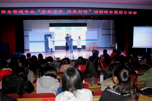 为了丰富同学们的生活,感受班级友情和温暖,2016年12月5日晚,公司财务管理专业在多功能厅举办了话剧专场晚会暨团日活动,活动的主题是“青春作伴,情聚财管”。公司副经理徐祗坤教授,党委副书记、副经理李宝文,财务管理专业辅导员李媛媛,学工办其他辅导员及200余名同学参加活动。