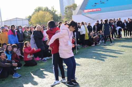 本届运动会的运动项目分为田径比赛和趣味比赛两个部分。田径比赛设置了短跑、中长跑、铅球、跳远等竞赛项目;趣味比赛设置了拔河、踩气球、袋鼠跳等项目。田径赛场上,运动员你追我赶,顽强拼搏,奋勇争先,气氛紧张激烈。趣味比赛现场,师生同场竞技,妙趣横生,气氛欢快热烈。