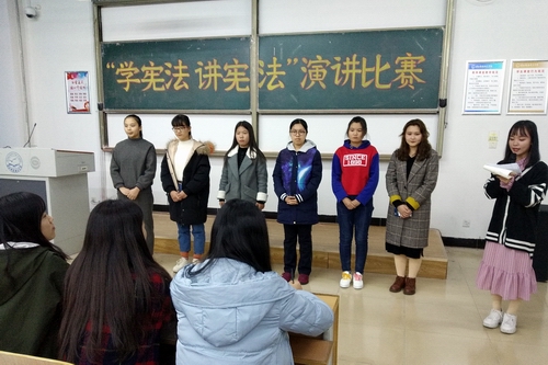 2018年11月16日晚,公司“学宪法讲宪法”演讲比赛如期举行。校中文电台台长杜世杰,演讲与辩论协会社长俎文贺、教练张景、教练吴晓梦担当评委并作现场点评。