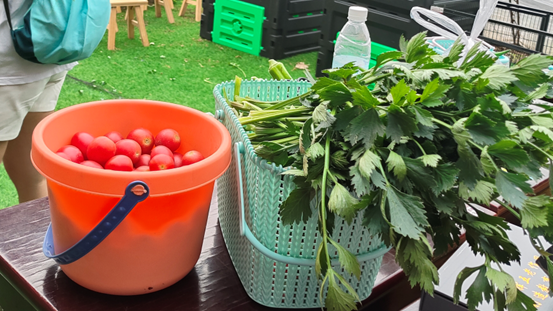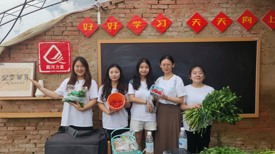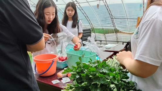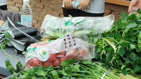 最后,志愿者们将今日的劳作成果——采摘分拣后的果蔬进行打包装袋,送与乡村和老师,并为朱庄村的“青年生鲜”与公司“科师农研”项目的合作作出了初步努力。