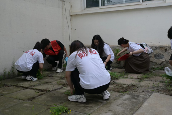 紧接着来到下一环节:环境卫生整治,共创清洁乡村环境。志愿者们来到居委会旧址,关于对其的合理利用,大家纷纷建言献策,提出将旧服务点改造为老员工青年驿站的创意观点。结合前者打造“美丽乡村衣食住行一条链服务”,这需要大家共同的坚持与努力。