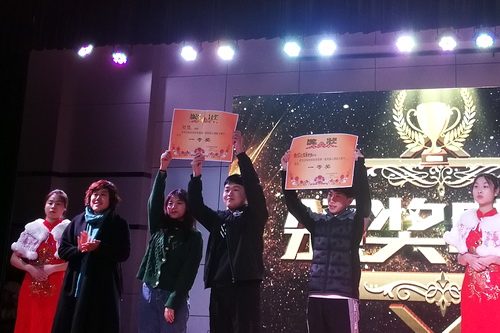 经过激烈比拼,公司和数学与信息科技公司获得秦皇岛校区并列一等奖,园艺科技公司获得昌黎校区一等奖,艺术公司获得开发区校区一等奖。园艺科技公司、外国语公司、数学与信息科技公司获得优秀组织奖。与会领导现场给获奖单位和演员颁奖。至此,历时一个半月的第一届校园心理剧大赛圆满落幕。