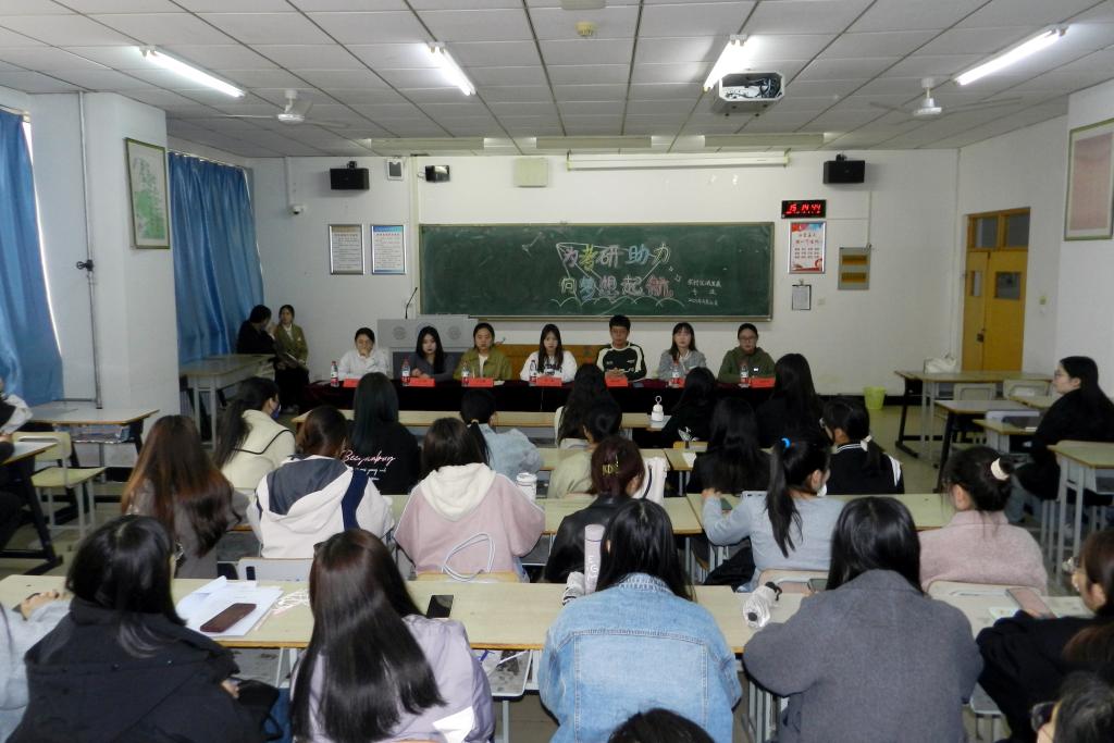 2023年4月20日,公司农村区域发展专业考研交流会在逸夫教学楼A501教室如期举办。考研成功上岸的2019级农村区域发展专业同学李彤、王志萌、杨浩然、张西平、王江悦、张云辉和2019级保险学专业左亿薇等7位嘉宾应邀莅临,向农村区域发展专业50余名同学分享考研经验、交流心得、答疑解惑,指点迷津。交流会由孙昊雯、王姚主持。