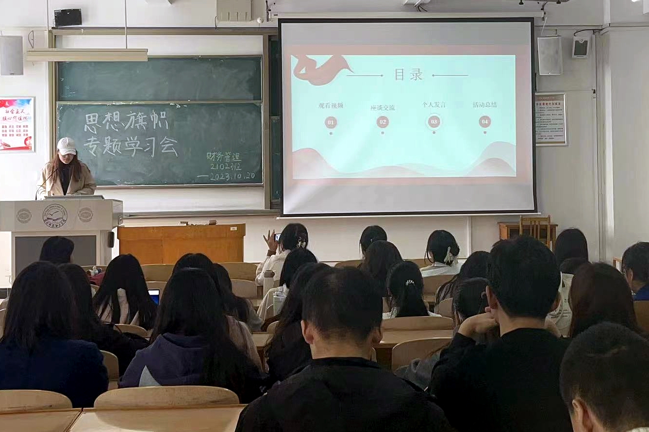 2023年10月20日,财务管理专业2101班、2102班团支部分别召开学习近平新时代中国特色社会主义思想专题学习会。学习会采用观看视频、问答、查询、交流学习体会等多种方式进行。两个班级的同学积极参加了学习会。