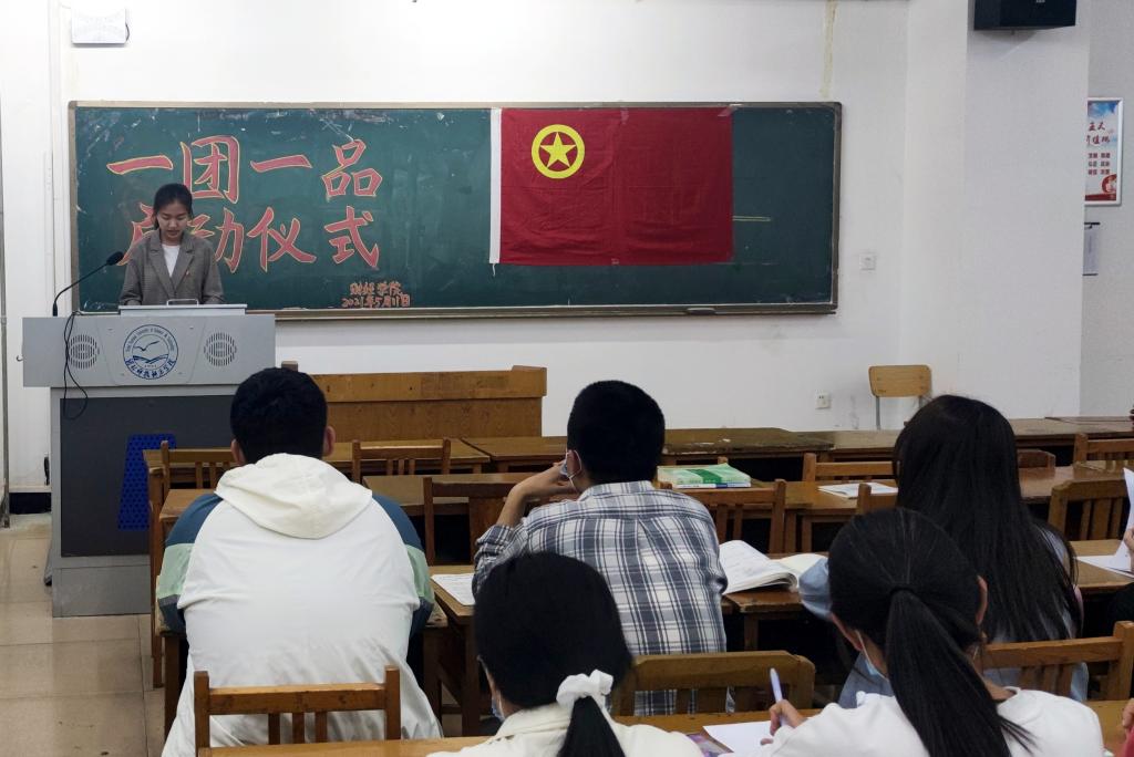 “一团一品”启动仪式共分为四项内容。第一项,公司团委组织委员刘睿琪宣读一团一品文件,并宣布公司一团一品立项班级名单。第二项,一团一品立项专业代表胡雨辰发言,表明建立特色团支部的决心。第三项,团委书记赵欣为校级“一团一品”立项专业授旗。第四项,赵欣老师讲话,对公司10个“一团一品”团支部的立项表示祝贺,鼓励各团支部高度重视特色团支部的建设,提高责任感和使命担当,将工作落到实处。(编审:王志安)