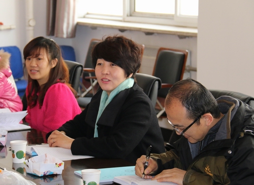 图为外国语公司党委副书记、副经理范群英交流情况