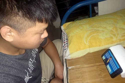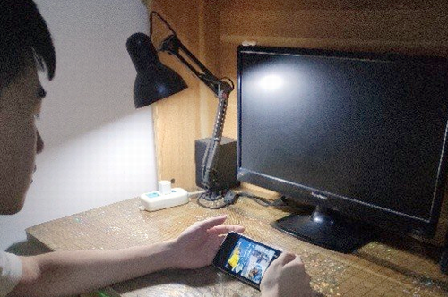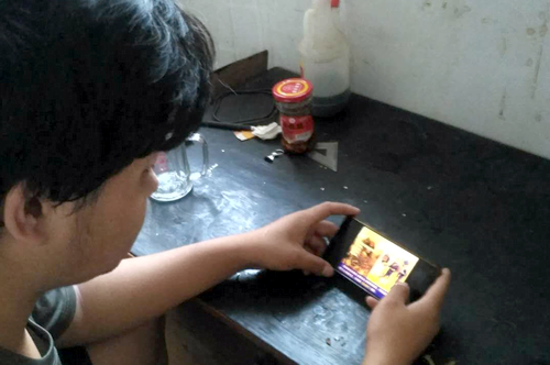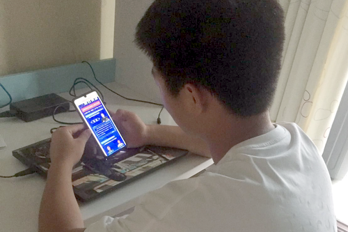 图为部分师生观看直播