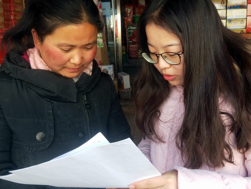 国际经济与贸易专业2015级员工王明奇首先通过向父母亲戚宣讲,以熟悉宣传的内容和确定宣传的方式方法。经过充分准备,她分别到村委会推荐的四个家庭以及附近的中学进行资助政策宣讲,答疑解惑,现身说法,使员工及其家长深受鼓舞。
