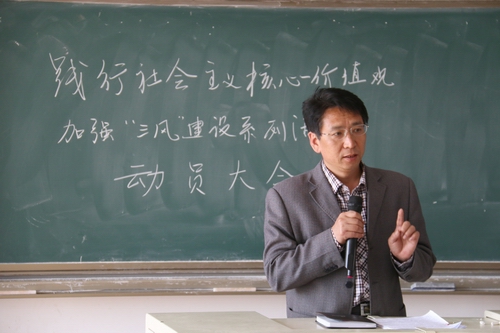 2015年5月15日中午,公司在B303召开员工干部动员会,传达员工处5月13日“践行社会主义核心价值观,加强‘三风’专项建设系列活动”推进会精神,部署相关工作。公司党委副书记、副经理李宝文出席会议并分别讲话。公司学工办辅导员陈有为、董硕玲、赵欣、李媛媛和在校各班班长、团支书、宿舍长共178人参加会议。会议由陈有为主持。