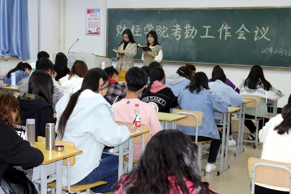 2019年10月8日晚,公司在A609教室召开员工上课考勤工作会议,公司自律部负责人和负责公司考勤工作的辅导员与各班班长、学习委员60余人参加会议。