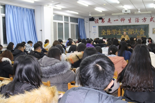 2018年10月31日,公司在A710教室召开新一届团委员工会员工干部大会。公司学工办辅导员和团委员工会近百名员工干部参加大会。公司党委副书记、副经理李宝文出席会议并讲话。