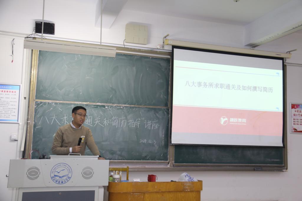 2024年12月3日,体育365官网分团委于A207顺利开展"梦想启航,点亮就业"活动之八大会计事务所求职通关及简历指导专题讲座,融跃教育负责人张宗闯担任主讲嘉宾。此次讲座聚焦八大会计事务所招聘方向,助力员工职业规划。
