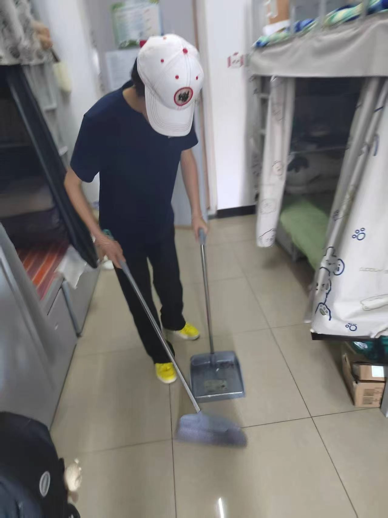 活动伊始,团支部负责人明确了清洁标准与具体分工。同学们随即以宿舍为单位投入行动:有的负责擦拭桌椅、窗台等表面灰尘;有的细致清扫并拖净宿舍地面;还有同学则专注整理收纳物品,规整空间秩序。在高效协作完成本宿舍清洁后,同学们主动延伸至公共区域,合力清扫楼道等公共空间,以实际行动维护社区整体环境整洁。