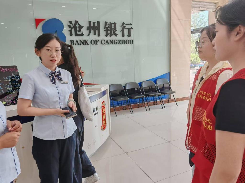在沧州银行秦皇岛海港支行的指导下,团队成员们化身金融安全宣传员。队员们首先学习银行反诈宣传手册与征信知识折页,接着在银行大厅为群众耐心讲解常见诈骗套路,强调保护个人信息、警惕不明链接的重要性;同时普及征信记录对个人信用的影响。