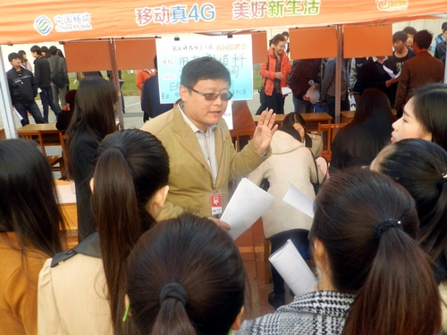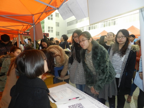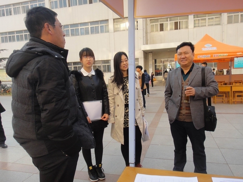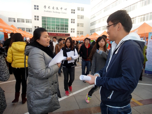 2014年11月8日上午,在公司人才招聘处的统一组织下,公司和秦皇岛校区其他院系一起在逸夫楼前举办了2015届毕业生就业双选会。本次双选会共有50余家企业前来选聘公司人才。公司学工办辅导员、毕业班班主任、专业带头人(负责人)和公司2015届毕业生400余人参加了双选会。公司全部党政领导现场指导工作。双选会在肖艳老师的精心安排下,井然有序。本次双选会前后,公司还举办专场招聘会11场,涉及企业23家。截至目前,公司共有133同学和用人单位达成就业意向。