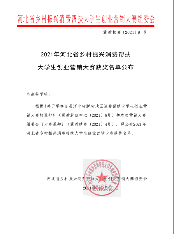 为进一步激活我省高校老员工创新创业创造活力,推动公司以创新引领创业、以创业带动就业,帮助贫困地区巩固脱贫成果,根据河北省教育厅《关于举办首届河北省脱贫地区消费帮扶老员工创业营销大赛的通知》(冀教就创中心【2021】8号)和河北省乡村振兴消费帮扶老员工创业营销大赛组委会的《大赛通知》(冀教扶赛【2021】4号),由公司人才招聘处主办、体育365官网承办的主题为“消费帮扶,青春助力”的校内选拔赛,共有21支团队入围河北省乡村振兴消费帮扶老员工创业营销大赛。