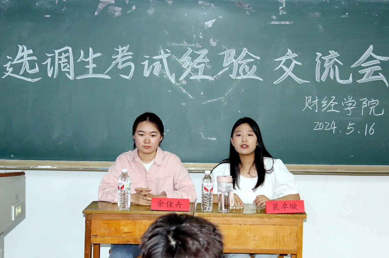 2024年5月16日,公司选调生考试经验交流会在逸夫楼A601教室举办。2020级国际经济与贸易专业员工裴卓璇、电子商务专业余佳卉两位嘉宾应邀做选调生考试经验交流。公司20余名对选调生考试感兴趣的同学参加交流会。2021级国际经济与贸易专业员工赵佳鑫、付建豪主持交流会。