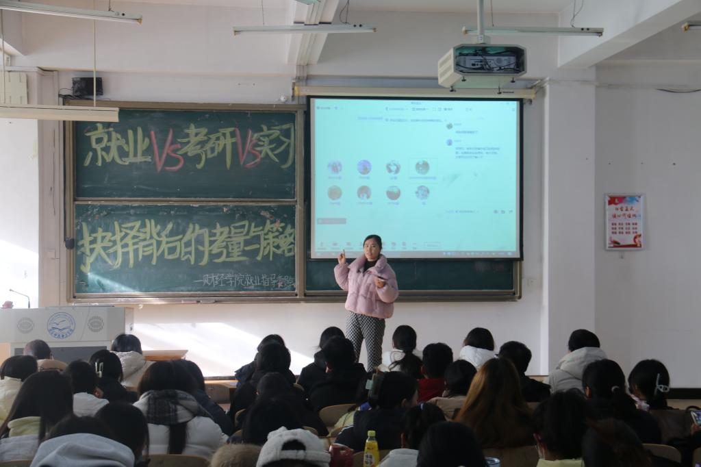 2024年11月28日,体育365官网就业指导委员会于B203和B205成功举办“就业vs考研vs实习 抉择背后的考量与策略”讲座。此次讲座旨在帮助员工理解不同选择背后的考量因素,制定适合自己的职业发展策略,从而在激烈的竞争中脱颖而出,实现个人价值和职业目标。
