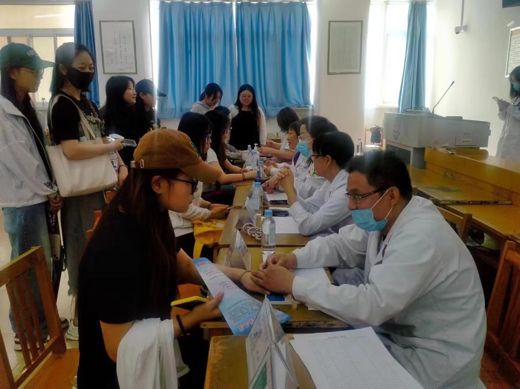 第三医院中医科、疼痛康复科、妇科、心理睡眠科的专家为师生们进行义诊,为大家健康宣教、测血糖、量血压、测血氧及心率。对师生存在颈椎疼痛、睡眠问题等症状,专家们耐心讲解相关知识,并对下一步防治做了建议。