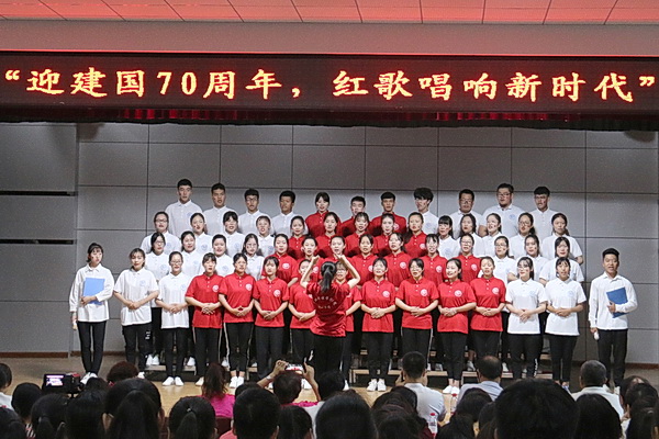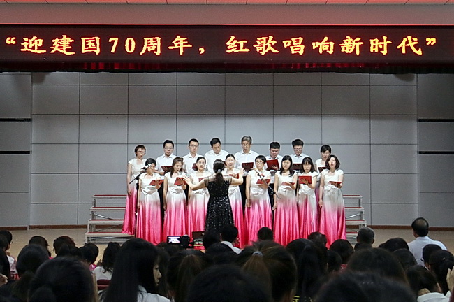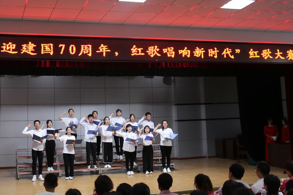 为了迎接伟大中华人民共和国成立70周年,2019年6月27日,体育365官网于在多功能厅举办了以“迎中华人民共和国成立70周年,红歌唱响新时代”为主题的红歌大赛。3支教工代表队和7个专业的员工代表队近500名师生欢聚一堂,引吭高歌。