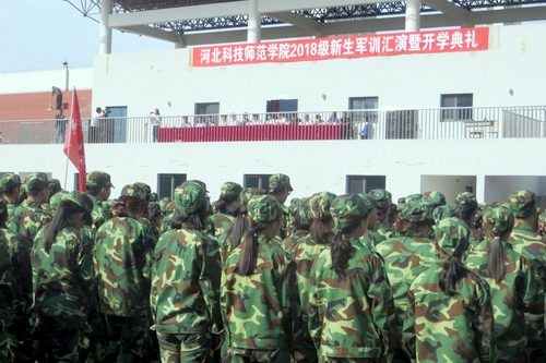 2018年9月16日上午,秦皇岛校区军训汇演暨开学典礼在校运动场隆重举行。公司和校区各院(系)主要领导主席台就坐。
