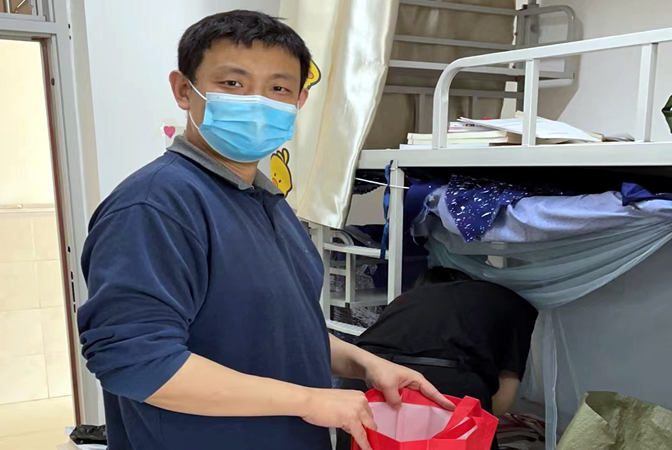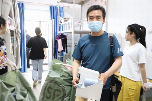 上午8时,师生拿着编织袋来到了员工宿舍楼,依据预先制定的打包托运方案,按照事先的分组和宿舍安排,投入到打包行李物品的活动中。各个组内分工明确,密切配合,有人负责与远在家中的毕业生视频连线,有人负责收集员工行李物品,有人使用编织袋打包并粘贴标签。大家忙而有序,有条不紊。针对物品的取舍、打包方式、快递公司选择等相关问题事无巨细与毕业生多次确认,充分考虑毕业生们的意愿和感受,尽力把好事做好。经过师生共同努力,仅用一天时间,把230多名毕业生的行李物品打包完成。随后,毕业班辅导员、班主任和快递员取得联系,共同完成每个毕业生行李物品托运的最后一步。