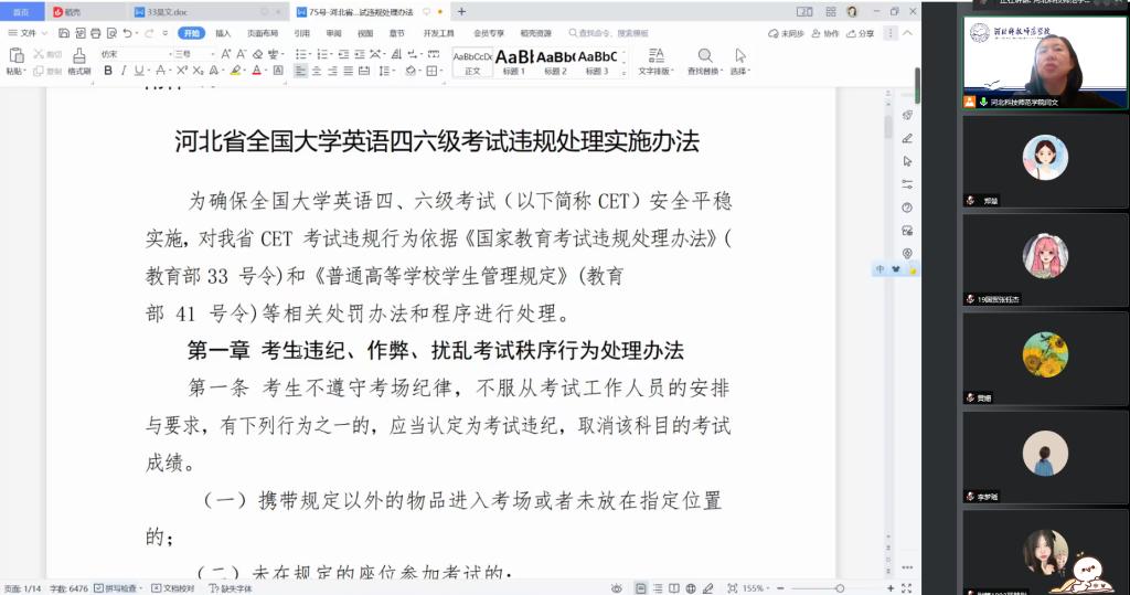 2022年6月11日全国大学英语四六级考试在即。2022年6月7日,公司召开线上诚信考试会议,进行考试纪律教育。会议由公司副经理闫文主持。公司教务办、学工办负责人与会,40余名考生参会。
